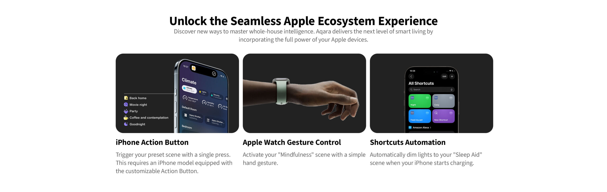 Để mang lại trải nghiệm chiếu sáng tự nhiên và tiện lợi nhất, Aqara khuyến nghị kết hợp T2 Lite với các thiết bị điều khiển thông minh như: