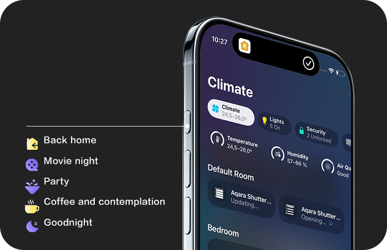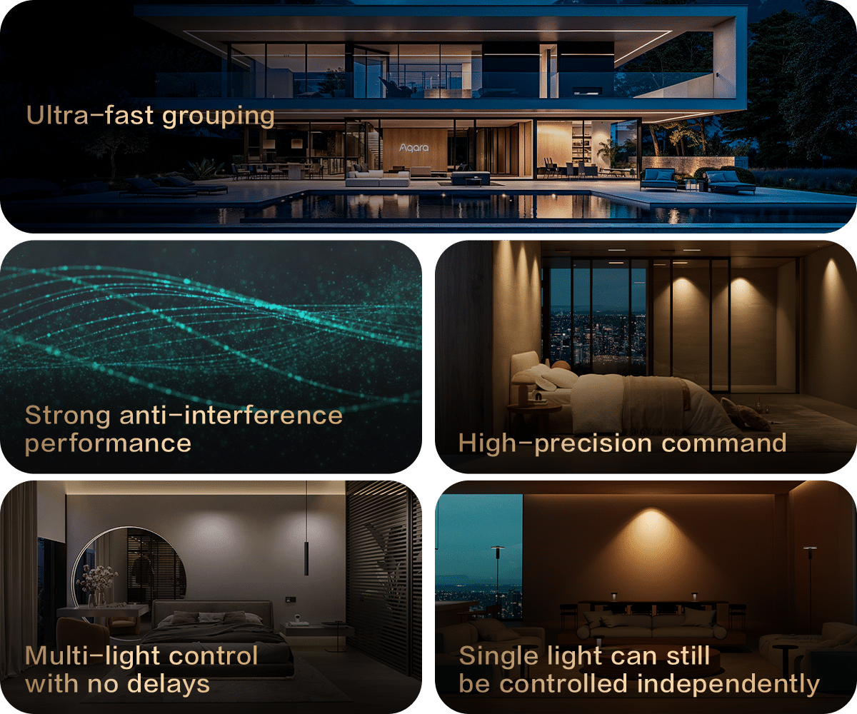 Bạn cũng có thể kết hợp T2 Pro với công tắc cảm ứng Aqara S100 hoặc S1E để điều khiển nhiều chế độ ánh sáng chỉ bằng một chạm – như “Thư giãn”, “Xem phim”, “Tiệc tối”, v.v.