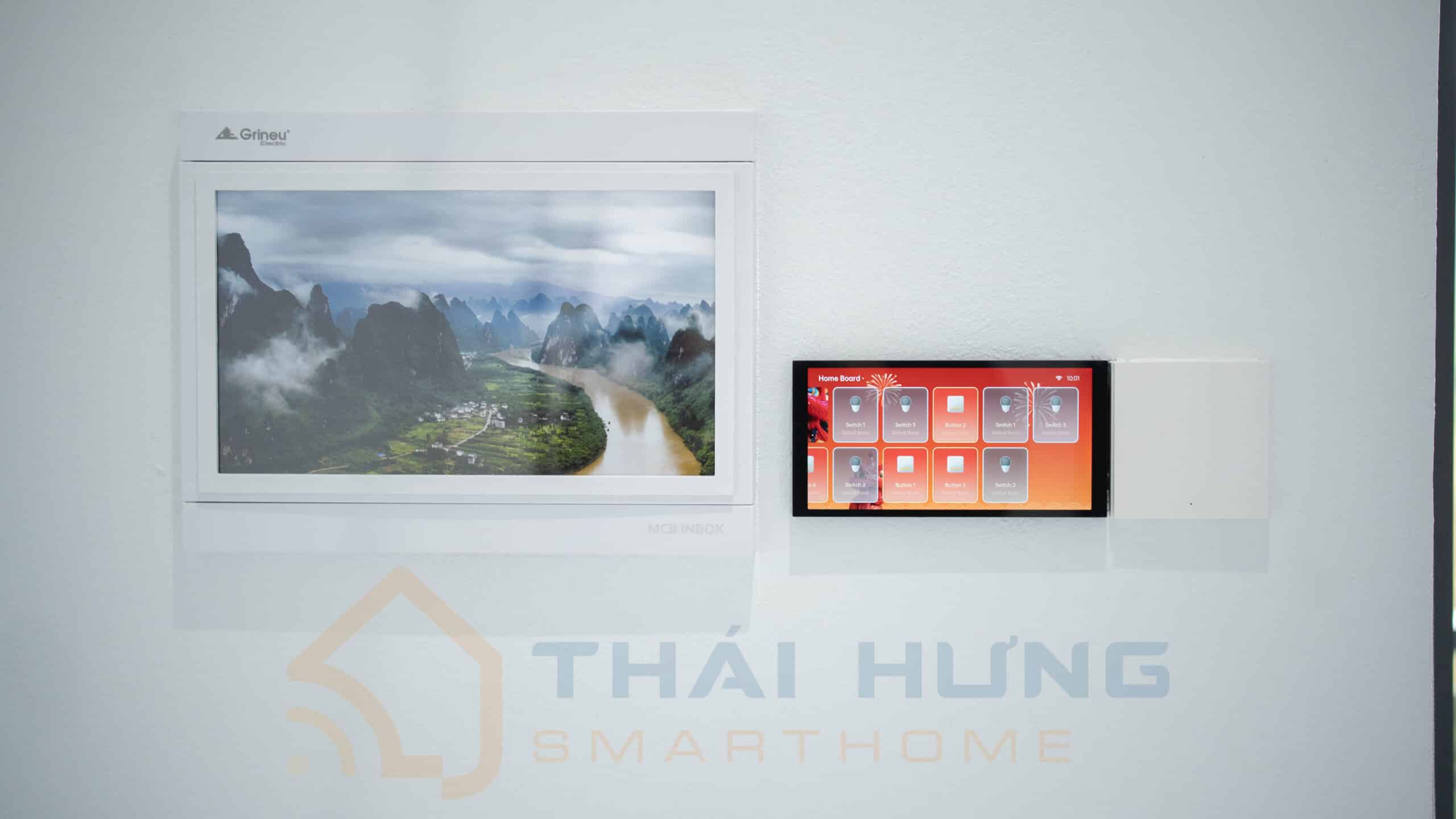 Bên cạnh Aqara S100, dự án nhà thông minh tại Cao Bằng còn được trang bị công tắc tích hợp màn hình Aqara S1 Plus – thiết bị đóng vai trò như một bảng điều khiển thông minh thu nhỏ ngay trên tường.
