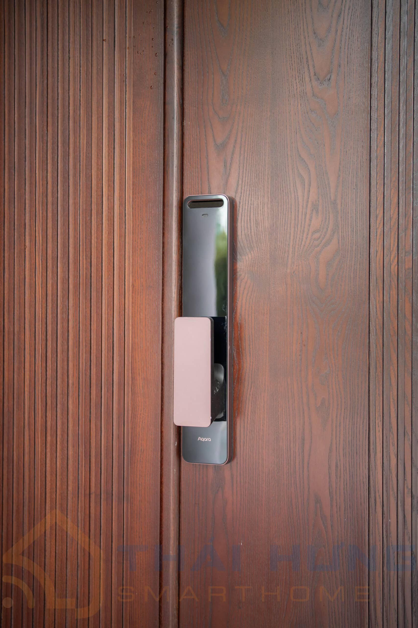 Cửa chính của biệt thự được trang bị khóa thông minh Aqara D200i, nổi bật với khả năng nhận diện khuôn mặt tiên tiến, mang lại trải nghiệm mở cửa nhanh chóng và an toàn.