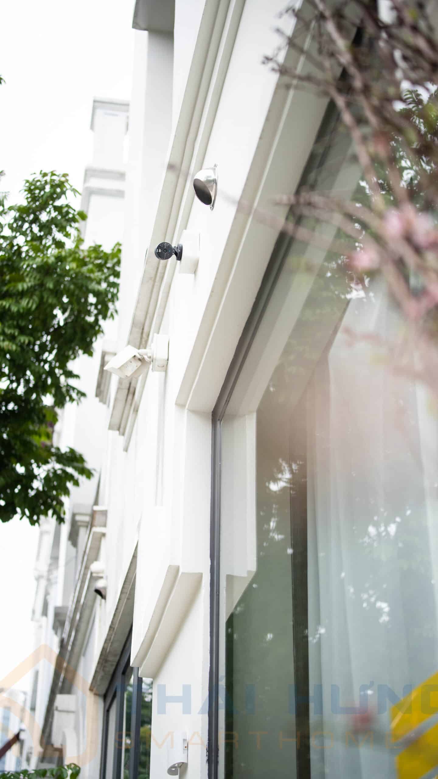 Khu vực bên ngoài biệt thự được lắp đặt camera Aqara G100, giúp: