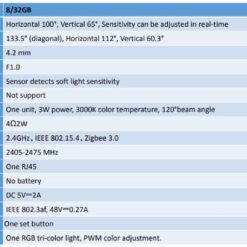 - Cảm biến PIR: Góc ngang 100°, góc dọc 65°, độ nhạy có thể điều chỉnh theo thời gian thực