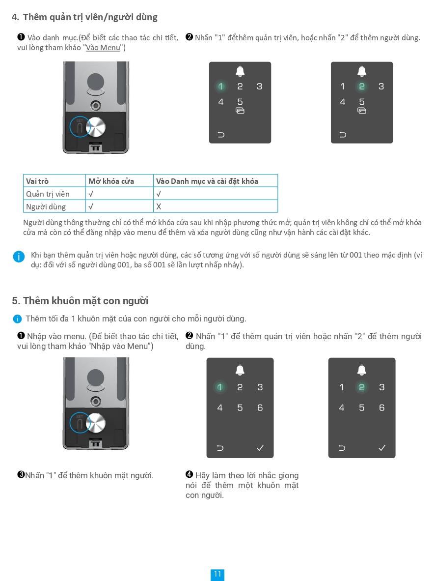 – Số lượng người dùng 50, khuôn mặt 50, mật khẩu 50