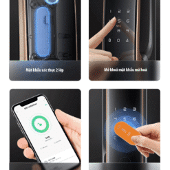 - Mở cửa bằng: khuôn mặt, vân tay, mã số, khoá cơ và Bluetooth