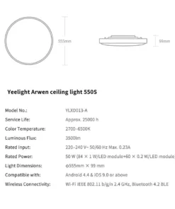 Đèn ốp trần Yeelight Arwen S – 550S Backlight RGB phương thức đièu khiển đa dạng