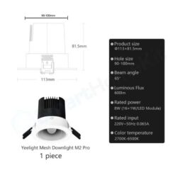 Thông số kỹ thuật đèn Yeelight LED Downlight/Spotlight M2